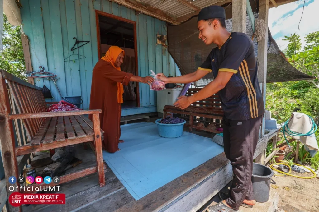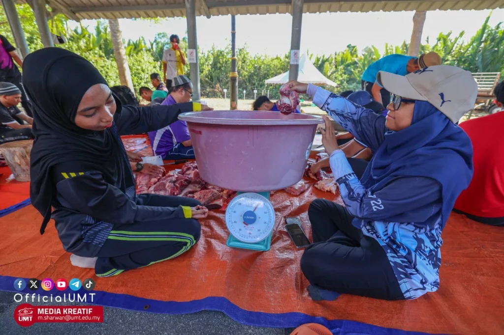 The first-year student from the Bachelor of Economy (Natural Resources) programme decided to enhance her self-skills by participating as volunteer in the Korban Perdana programme organized by UMT’s Sultan Mahmud Islamic Centre.