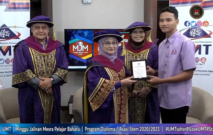 Kuala Nerus – The COVID-19 pandemic has required Univesiti Malaysia Terengganu (UMT) to hold the 2020 New Intake Pledge Ceremony virtually through Cisco WEBEX and Facebook Live.