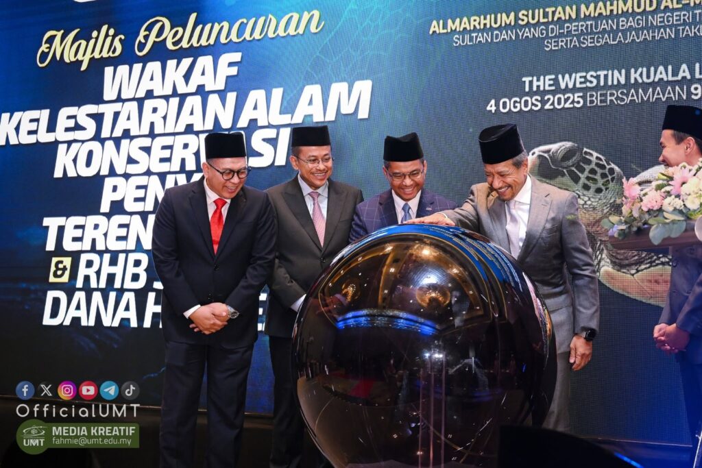 KUALA LUMPUR, 4 Ogos 2025 – Kebawah Duli Yang Maha Mulia Sultan Terengganu, Al-Wathiqu Billah Sultan Mizan Zainal Abidin Ibni Almarhum Sultan Mahmud Al-Muktafi Billah Shah hari ini berkenan menyempurnakan Majlis Peluncuran Wakaf Kelestarian Alam: Konservasi Penyu Terengganu dan RHB Sukuk Dana Hafeez yang berlangsung di Hotel The Westin, Kuala Lumpur.