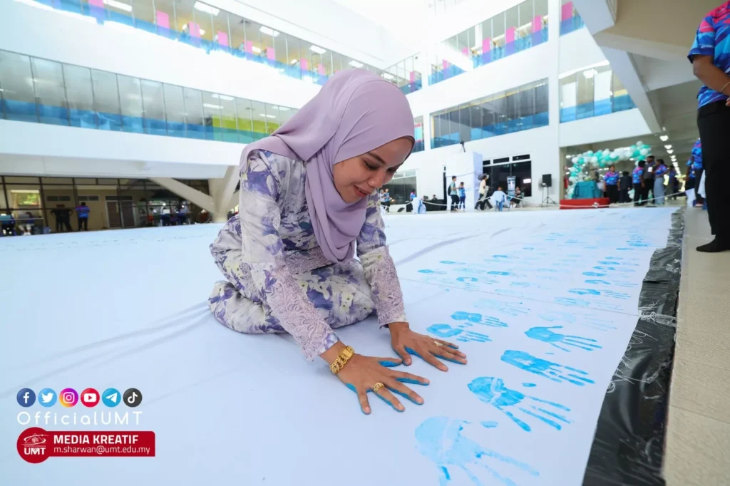 “We are very proud because this campaign received support from the university community and the surrounding community, where they imprinted their palm print in colours on the mega-sized canvas, which has received an endorsement from The Malaysia Book of Records.