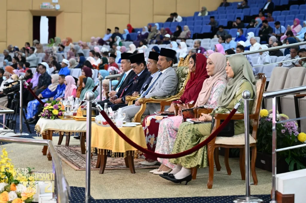 Her Royal Highness Sultanah Nur Zahirah officiated the first session at the Sultan Mizan Hall today. The Sultanah, who is also UMT Chancellor, delivered a speech, in which Her Royal Highness congratulated all the granduands and award recipients.