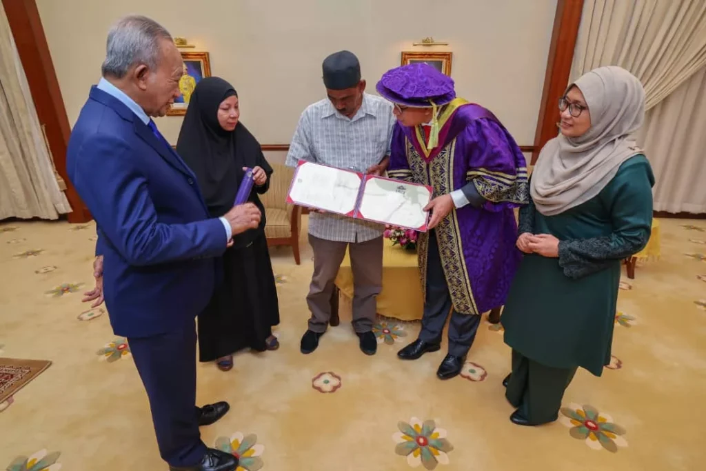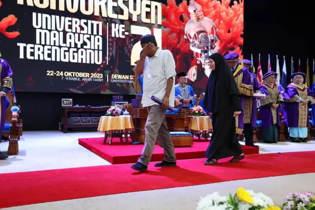 Kuala Nerus – There were no words that could describe the feelings of a husband and a wife who came from Gua Musang, Kelantan, when accepting their late son’s degree at the 21st Universiti Malaysia Terengganu Convocation Ceremony at the Sultan Mizan Hall.