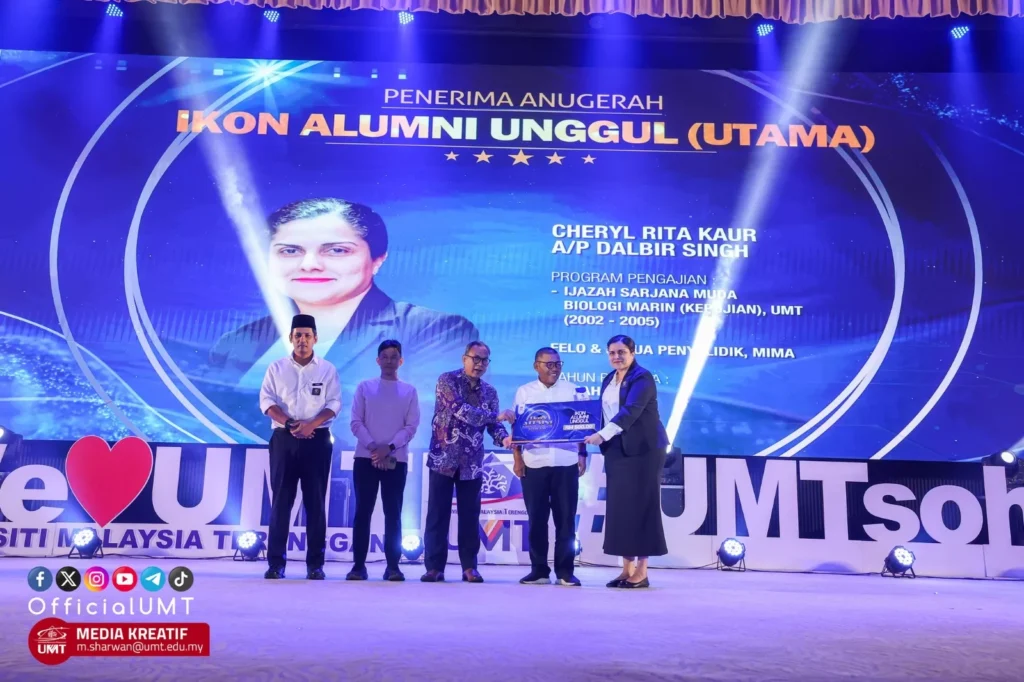 Cheryl Rita Kaur Dalbir Singh recipient of Ikon Alumni Unggul UMT award Monday, 29/7/2024 Share This Article : Universiti Malaysia Terengganu (UMT) has successfully organized a special event for UMT’s alumni, Majlis Anugerah Ikon Alumni 2023, which took place at Sultan Mizan Hall, UMT.  At the event, UMT alumnus Cheryl Rita Kaur Dalbir Singh […]