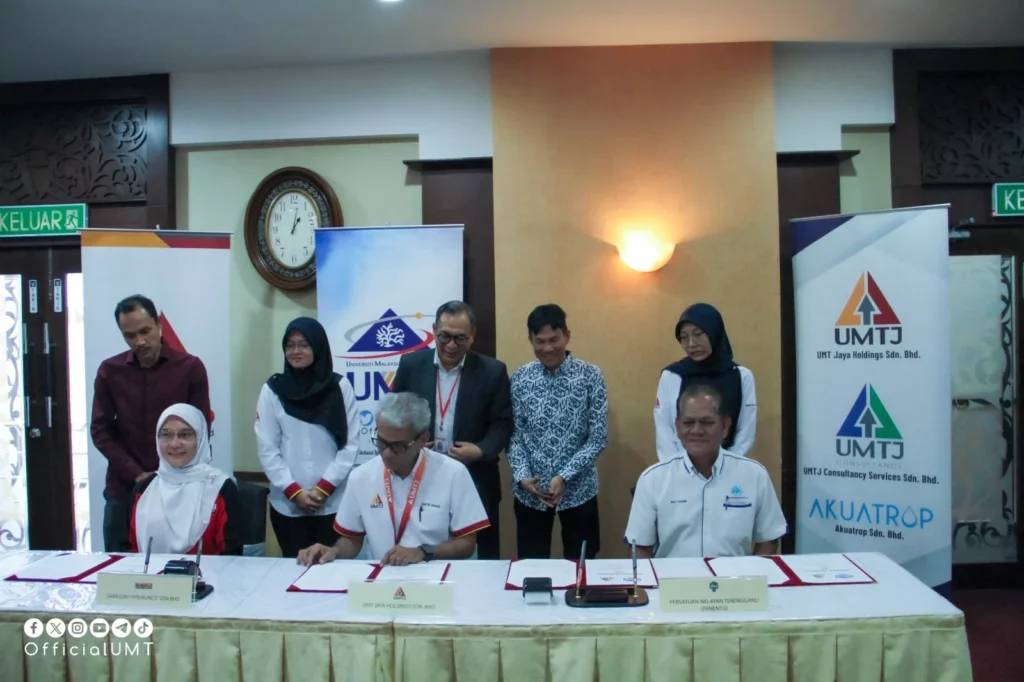 KUALA NERUS, 15 July 2024 – An innovative product created by a researcher from Universiti Malaysia Terengganu (UMT), Rapid Biofloc, will be extensively used after the university, through its subsidiary company UMT Jaya Holdings Sdn Bhd, signed a memorandum of understanding with the Terengganu Fishermen Association (PENENTU) and SABASUN HYPErRUNCIT Sdn Bhd (SABASUN).