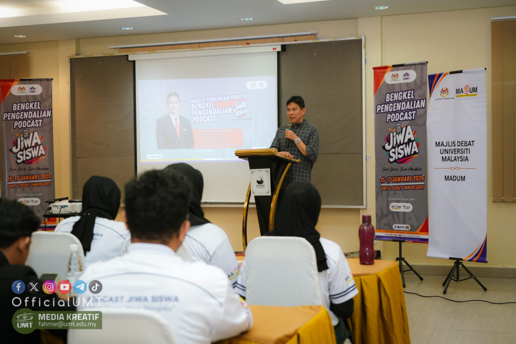 Universiti Malaysia Terengganu (UMT) took the lead in strengthening student media and digital communication at the JIWA SISWA Podcast Management Workshop, held from January 15–17, 2026, at Scout Inn Resort. As the main academic and strategic anchor, UMT facilitated this collaborative initiative with the Malaysian University Debating Council (MADUM) and Yayasan Perkasa Siswa (YPS) to establish a national brand for student-led podcasts across Higher Education Institutions (IPT).