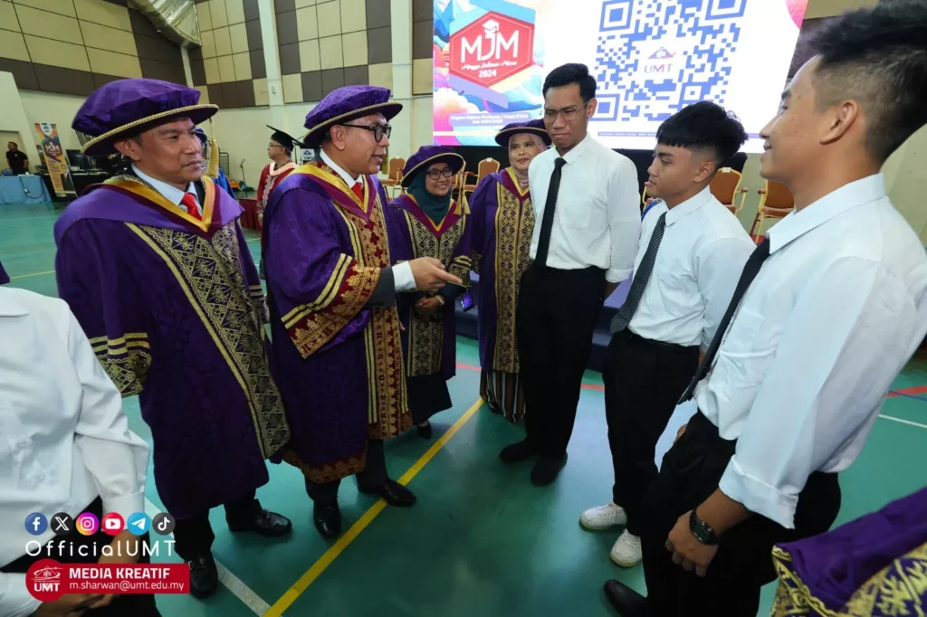 UMT Deputy Vice Chancellor (Academic and International) Prof. Ts. Dr. Mohd Zamri Ibrahim, currently performing the function of UMT Vice Chancellor, in his speech said students need to be fully committed in their studies as a way of repaying what their parents have done for them and so that they will be able to contribute to the country later.