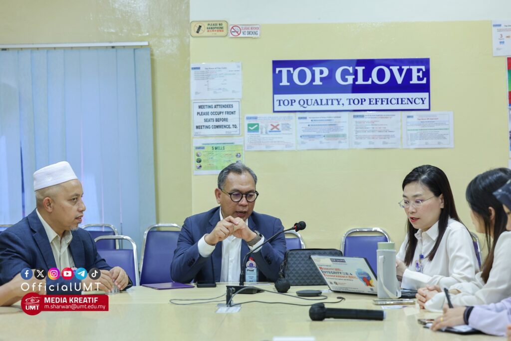 The UMT delegation to Top Glove was led by Professor Zamri, accompanied by Professor Ts. Dr. Muhammad Suzuri Hitam, Dean of the Faculty of Computer Science and Mathematics; Professor Dr. Muhamad Safiih bin Lola, Programme Head for the Bachelor of Science (Data Analytics) with Honours; Ts. Dr. Mohamed Saifullah bin Hussin, 2u2i Coordinator for the Bachelor of Science (Data Analytics) with Honours; and Mr. Wan Ab Hafiz bin Wan Ibrahim, Special Officer to the Vice Chancellor.